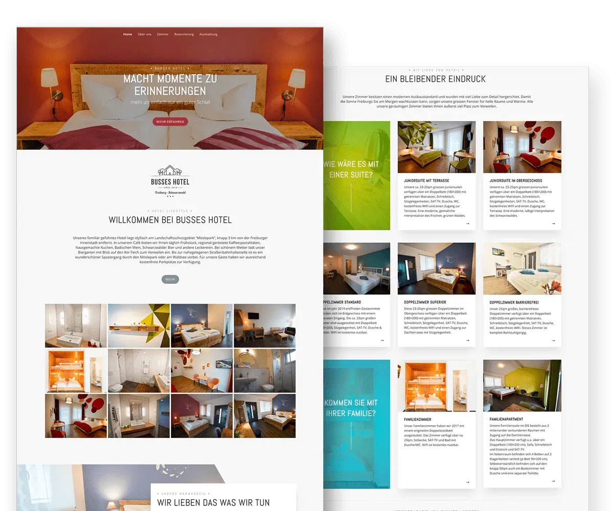 Die Familie Busse führt einen Campingplatz in der 3.Generation. Claus Busse hat vor einigen Jahren ein Gästehaus errichtet und dieses nun um ein Hotel erweitert. Der Neubau und die Zimmer präsentieren sich in einem modernen und mit viel Liebe zum Detail eingerichtetem Hotel. Einladende Zimmer sorgen für erholsame Nächte und unvergessliche Momente. Busses Hotel in Freiburg im Breisgau ist etwas ausserhalb gelegen, aber dennoch ist man in wenigen Minuten in der Altstadt Freiburgs.