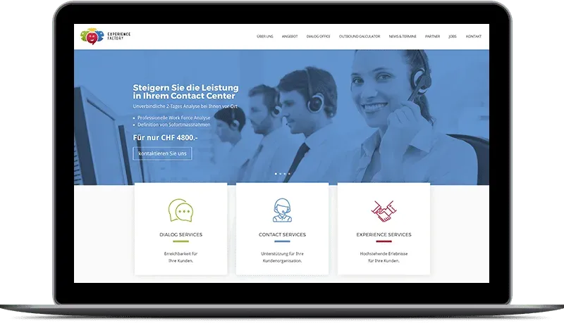 Experience Factory präsentiert sich im Logo in einem klassischen 4 Farbenmodell. Mir war es wichtig diese 4 Farben in die Seite zu integrieren, da jedes Ihrer “Welten” sich an diesen Farben misst. Eine klare Abtrennung konnte so erreicht werden um die verschiedenen Angebote farblich voneinander zu trennen. Die Farben sollten jedoch nur als Akzente eingesetzt werden. Um die Seite nicht zu bunt zu gestalten, habe ich grau und weiss als Hintergrundfarben genutzt. Dies steigert die Lesbarkeit der teilweise langen Texte und trennt einzelne Sektionen deutlich voneinander.