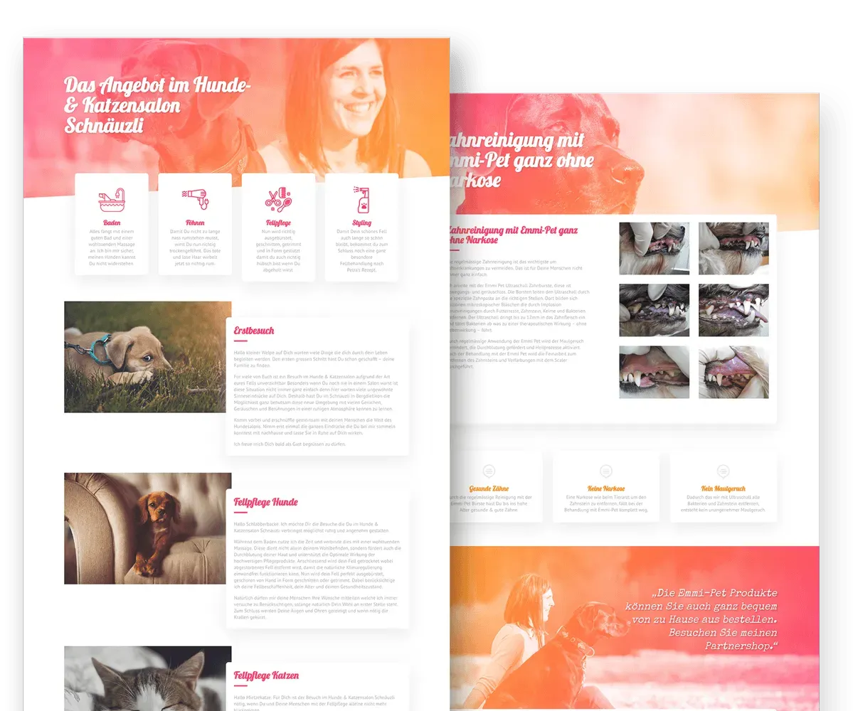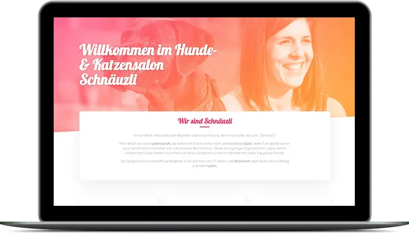Mir war es wichtig eine moderne und einfache Seite zu erstellen. Sie sollte die freundliche Atmosphäre des Hundesalons Schnäuzli und die nette Art von Petra widerspiegeln. Mit den tollen Fotos von Clasa Art war dies ein Kinderspiel.